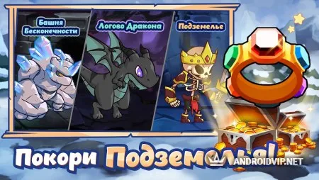 Процесс развития продолжается даже после выходя из приложения. В игре присутствуют несколько десятков видов мечей, доспехов и способностей. Также, есть возможность проходить опасные и захватывающие подземелья, где можно добыть немало наград и принять участие в сражениях против реальных игроков. Погрузитесь в этот опасный, но тем не менее прекрасный мир!