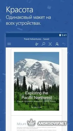 Microsoft Word - мобильная версия известной программы для работы с текстами, адаптированная для устройств с системой Android. Приложение включает в себя все те же основные функции, что и компьютерная версия. Имеет удобное управление, разработанное под сенсорные экраны. Создавайте и редактируйте документы, добавляйте изображения и диаграммы, а также читайте книги в комфортном режиме одним пальцем.