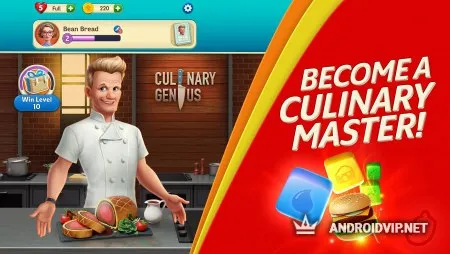 С каждым пройденным уровнем, ваш уровень будет повышаться, и появится возможность изучить новые рецепты более изысканных и сложных блюд. Постепенно добавляйте в ваш арсенал разные кухонные приборы и инструменты, что позволит быстрее проходить непростые задачи. Озвучка голоса в игре оригинальная, от самого шеф-повара, и царит довольно позитивная атмосфера, благоприятно сказывается на процессе!
