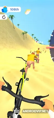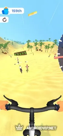 Гонки проходят на довольно больших и разнообразных локациях, вы сможете поездить по зелёному и холмистому лесу, по песчаной пустыне и заснеженным вершинам гор. Благодаря виду от первого лица, проездки становятся ещё более впечатляющими. Управление в игре простое, достаточно одного касания, чтобы контролировать направление велосипеда!