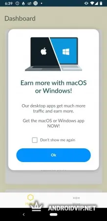 Сумму, которую можно заработать конечно не впечатляет, но учитывая что вам не нужно ничего делать и лишний трафик всё равно пропадёт, это вполне стоит того. Вы будете получать один цент за использованные 100 мегабайт, и средства можно будет вывести через PayPal, накопив 20 долларов. В целом, неплохой вариант в качестве пассивного дохода.