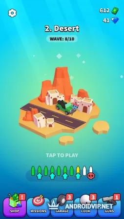 На каждом уровне за вами будут гнаться десятки противников на мотоциклах, квадроциклах, огромных внедорожниках и даже на вертолётах. Вооружитесь пистолетом, автоматом, пулемётом, базукой, заберитесь на кузов вашего пикапа и начните уничтожать их, стараясь целиться в колёса, водителей, чтобы быстрее избавиться от них. По мере прохождения, открывайте новые виды вооружения и прокачивайте ваш автомобиль, устанавливая новые бампера, защитные решётки, фары и другие модули.