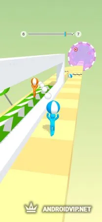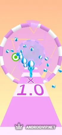Шаров в вашем распоряжении бесконечное количество, что позволяет каждый раз придумывать уникальные тактики и действовать не по правилам. После пересечения финиша первым, вы сможете преумножить заработанные очки, разбив во время бега перед вами стеклянные стены при помощи мячей. За заработанные очки, открывайте для персонажа уникальные скины и кастомизируйте внешность!