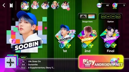 Помимо стандартного режима, можно проходить уровни в паре, где каждый берёт на себя определённую область дорожки. Проверить свои силы пройдя микс из трёх треков. Также, есть возможность устраивать соревнования, где побеждает тот, кто сумел собрать наибольшее количество очков к концу трека. Для большего интереса, выберите для себя одного из исполнителей, проходите сотни уровней и увеличивайте его популярность!