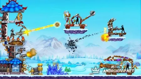В самом начале в вашем распоряжении будет обычная катапульта, метающая каменными ядрами и деревянная башня. Чтобы совершить выстрел, нужно натянуть механизм запуска снаряда движением в обратную сторону, выбрать цель, рассчитать градус полёта снаряда и отпустить натяжение катапульты. Если вы хорошо прицелились, то в большинстве случаев можно уничтожить противника одним выстрелом, но враги будут насылать всё более мощных солдат, вплоть до мехов в стиле стимпанк.