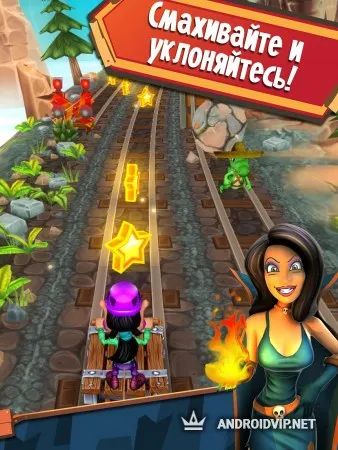 Механика игры довольно классическая, вы будете передвигаться по трём или двум железнодорожным путям, между которыми сможете свободно перемещаться. Перед вами очень часто будут появляться различные препятствия в виде шипов, встречных поездов, тупиков и слуг ведьмы, поэтому от вас потребуется отменная реакция, чтобы вовремя уворачиваться от них. Также, старайтесь по пути собирать золотые монеты, которые можно потратить на уникальные скины и совершенствование вашей тележки.