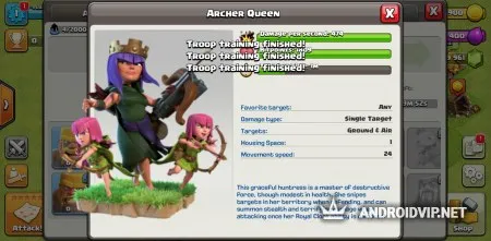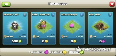 С самых первых минут игры у вас будут все существующие игровые валюты и ресурсы, что позволит сразу же начать строить все имеющиеся здания, нанимать солдат и прокачивать их, не ожидая ни секунды. Главное нужно хорошо продумать план постройки города, и установить защитные сооружения по периметру. Вас будут регулярно атаковать такие же сильные противники, как и вы, именно поэтому в первую очередь важно выстраивать стратегию будущей схватки.