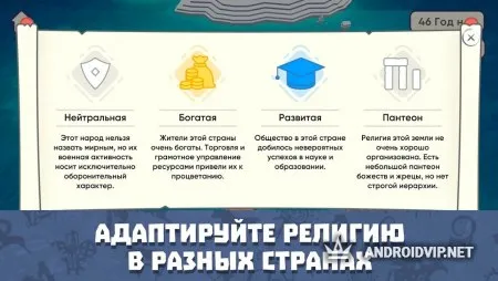 Начать вам предстоит с самых древних времён, и выбрать один из религий, возродившийся в эти времена, среди которых есть разные виды язычества, шаманизма, монотеизма, спиритуализма и многое другое. После этого, ваше дальнейшее развитие зависит только от вас, выберите какой станет ваша религии, будет ли она поощрять войны и принесение жертв, или же станет совершенно мирной и добродушной ко всем. Также, стоит подумать о способе распространения вашей веры, воспользуетесь ли грубой силой и заставите всех вас слушаться, или же поступите более хитро.