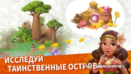 Также, можно отправиться обследовать новые территории острова, где встретите интересные задания и заведёте новых знакомых. Во время путешествия можно даже найти сокровища и новые виды растений. Продавать собранные вами предметы, и развивать вашу ферму на накопленные за это деньги. Создайте самостоятельно дизайн вашего уютного местечка и насладитесь успокаивающим процессом!