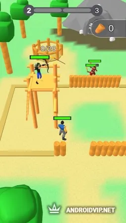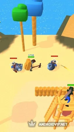 За каждое выполненное задание вы будете получать монеты для покупки новых инструментов и других улучшений. По мере игры, вам откроется портал за пределы деревни, где предстоит сразиться с противниками, атакующие вас волнами. Постройте защитные стены, возведите башню, откуда будет стрелять лучник, а сами отбивайтесь при помощи топора и щита!