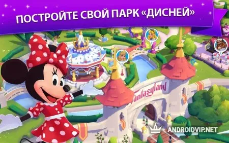 Набирая очки за прохождение уровней, вы сможете открыть новые карусели, аттракционы, здания и различные украшения, чтобы развивать ваш парк развлечений. Во время игры вы встретитесь с героями из мультфильма Аладин, Пираты Карибского Моря, Золушка, Алиса в Стране Чудес и многое другое. Окунитесь в эту прекрасную и добрую атмосферу сказки и волшебства!