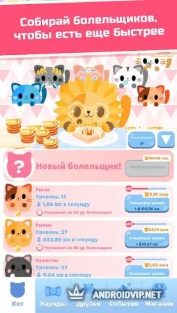 Жадный кот: кликер с котиками - это красочная казуальная игра, где вам предстоит принять участие в необычных соревнованиях по поеданию разных вкусностей на скорость. Отправляйтесь путешествовать по миру вместе с вашим очаровательным питомцем, который очень любит хорошо поесть, чтобы выигрывать награды, поедая еду быстрее ваших оппонентов!