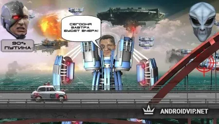 На каждом этапе прохождения перед вами будет стоять определённая задача, например, в первой волне атаки нужно будет сбивать подлетающие космические корабли, вовремя нажимая на них и не пропуская ни одной. Затем, соберите и прокачайте нашу отечественную машину, чтобы добраться до нужной цели, где по пути так же придётся сражаться с атакующими вас инопланетянами. Победив в конце концов их предводителя, выясняется кто их заказал и что это далеко не конец.