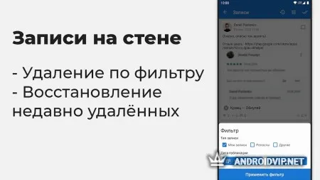 Здесь хорошо реализован фильтр удаления друзей и людей, на которых вы подписаны. К примеру, вы сможете быстро отобрать заблокированные страницы, или те, у которых отсутствует главная фотография, и страница не была активна уже долгое время. Также, можно массово отозвать исходящие заявки друзья, выйти из неактивных бесед, удалить старые диалоги, фотографии из альбомов и записи с вашей стены. А администраторы сообществ могут использовать приложение для очистки подписчиков по фильтру и удаления давнего контента.