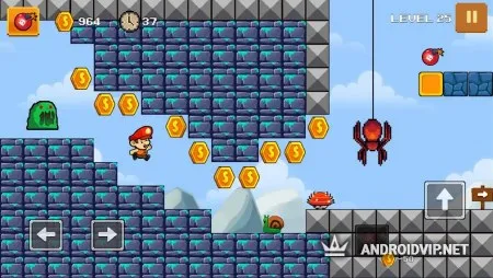 Также, не забывайте собирать по пути золотые монеты, которые потом можно будет потратить на покупку скинов и открытие новых скинов. Перед тем как спасти принцессу, нужно сразиться с охраняющими её монстрами, имеющие свои особые тактики ведения боя. Графика и музыкальное сопровождение сделаны с намёком на оригинальную версию игры, и создают позитивную атмосферу!