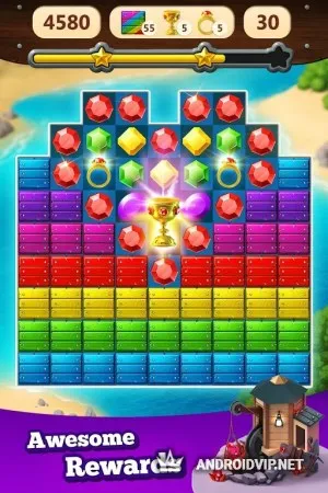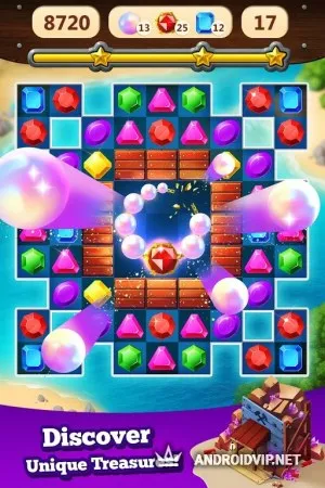 Геймплей в основном вполне стандартный, на каждом уровне перед вами будет игровое поле, наполненное теми самыми самоцветами, самых разных цветов. Вам же нужно передвигать их с места на место, чтобы собрать камни одинакового окраса в ряды от трёх штук. После того как вы соединили их в цепочки, они исчезают, а освобождённое место занимают другие. Таким образом нужно собрать достаточное количество очков, чтобы заработать три звезды и перейти на следующий уровень.