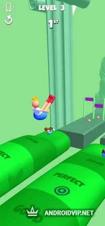 Механика игры заключается в том, что вам на каждом уровне нужно преодолеть целую полосу препятствий, где встретите опасные маятники, подвижные механизмы и поручни, готовые в любой момент скинуть вас с трассы. Ловко уворачивайтесь от всех препятствий, попутно собирая некую субстанцию, разбросанную по дороге. Чем больше у вас получится собрать её, тем объёмнее будет становиться ваша пятая точка, что положительно скажется в тот момент, когда вы с разгона спрыгнете на батут, ведь так получится передать больше энергии следующей участнице.