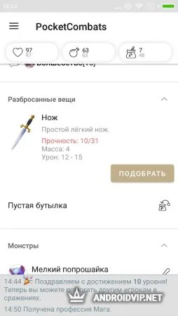 Pocket Combats RPG - это хардкорная текстовая ролевая игра с многопользовательским режимом и детально продуманным миром. Здесь вы не встретите классических магазинов с предметами и почти нету квестов, а есть только бескрайний мир, огромное количество подземелий и ваша собственная фантазия, которая украсит все присутствующие детали и сражений!