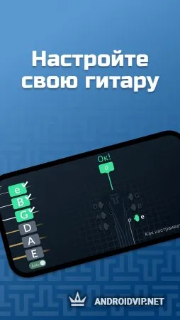 Чтобы сыграть какую либо композицию, достаточно будет следить за табулатурой на экране, где подробно указаны номера ладов и струны. Ещё одним достоинством этого приложения является то, что есть возможность получить обратную связь от реальных преподавателей, если у вас возникли какие-либо сложности, или хотите получить консультацию. Также, здесь есть встроенный тюнер, для быстрой настройки инструмента.