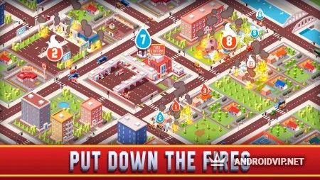 Увеличивайте штат сотрудников, расширяйте пожарное депо, открывайте новые участки по всему городу, чтобы тушить несколько пожаров одновременно и повысить свою эффективность. Используйте полученные деньги, чтобы улучшить свою станцию и оборудование. Покупайте новые пожарные машины, установки для тушения пожара, огнетушители, краны насосы и не забывается всё время держать запас воды на вашей станции нужного уровня. В игре так же присутствуют экономический элемент, поэтому учитесь правильно распределять свои средства и инвестировать их в нужные секторы. Сумейте достигнуть успеха и стать лучшим управляющим пожарной части в городе!