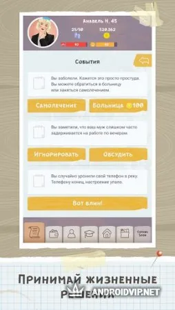 AltLife: Hard Life Simulator - это довольно реалистичный симулятор жизни, где все события описаны с помощью текстов и небольших иллюстраций. Здесь вы сможете полноценно прожить другую жизнь, где все будет зависеть только от принятых вами решений. В общей сложности есть несколько тысяч вариантов развития сценария, где вы определённо найдёте что-то своё!