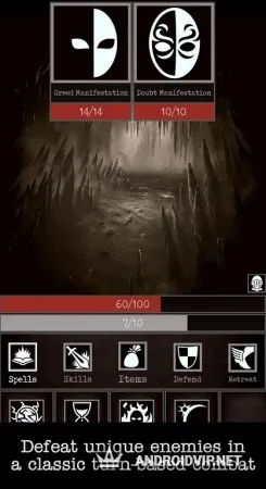 Grim Quest - Old School RPG - это классическая пошаговая РПГ с элементами рогалика, вдохновленная произведениями Лавкрафта и психоанализом Фрейда. Погрузитесь в атмосферный мир фэнтези, создайте своего персонажа и снарядите его более 40 уникальными заклинаниями. Участвуйте в интерактивных текстовых событиях, выполняйте квесты и сражайтесь с врагами!
