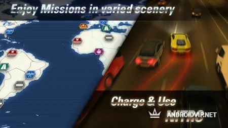 Управление в игре стандартное для данного жанра - повороты машины мы регулируем наклонами устройства, а остальные элементы контролируются нажатиями на дисплей. При желании можно отредактировать кнопки и выстроить управление так, как удобно вам.