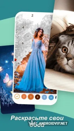 В игре представлены тысячи интересных картинок разной тематики, где каждый найдёт себе раскраску по вкусу - живописная природа, пейзажи, животные, еда, цветы, люди, достопримечательности и много других любопытных сюжетов. Выбирайте то, чему вам хотелось бы придать красок и приступайте к процессу. Каждая область рисунка пронумерована, а на цветах указаны цифры, в соответствии с которыми их нужно использовать. Раскрашивайте и превращайте черно-белый рисунок в красочную картину.