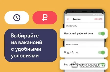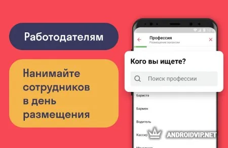 Все зарегистрированные пользователи проходят тщательную проверку и заполняют немалое количество информации, что облегчает поиск наиболее подходящего кандидата или работы. Объявления можно размещать абсолютно бесплатно без всяких ограничений. К тому же, простой интерфейс позволит каждому разобраться в функционале приложения всего за пару минут, а эргономичная организация информации облегчит процесс поиска.