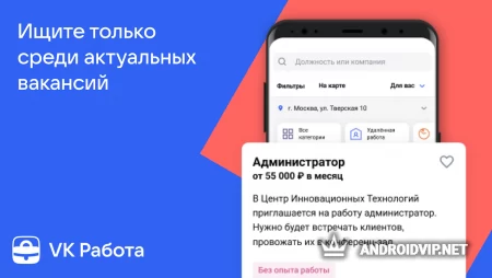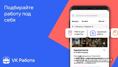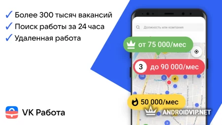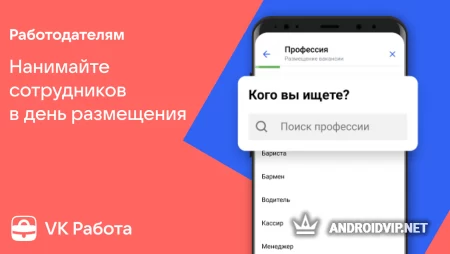 VK работа - это полезное приложение для быстрого и удобного поиска сотрудников и работодателей. Просматривайте тысячи актуальных вакансий, находите подходящие варианты, связывайтесь с работодателем и получайте работу всего в один клик! Ищите сотрудников? Размещайте свои вакансии, подбирайте потенциальных претендентов и назначайте им собеседования.