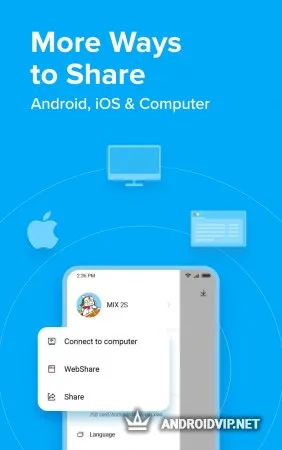 Ещё одним преимуществом является то, что передавать друг другу можно не только изображения, видео и аудиофайлы, но также с лёгкостью получится отправить уже установленные программы или игры. А для более простой работы и подключения, есть возможность воспользоваться сгенерированными QR кодами. А то, что приложение совместимо практически со всеми современными устройствами, открывает перед вами новые возможности!