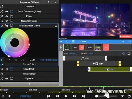 Помимо основных эффектов в виде цветокоррекции, разных видов размытия, виньетки, цветового колеса и других базовых параметров, вы сможете использовать 3D рендеринг, позволяющий сопоставлять видео и фото с 3D моделями. А так же инновационный звуковой редактор и продвинутые функции на базе ИИ, которые могут автоматически разделять фон и людей на видео в реальном времени. Используйте эти и многие другие инструменты для создания уникальных видеороликов и делитесь ими с друзьями!