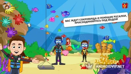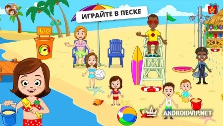 Перемещайтесь между различными локациями - пляж, море, магазин, игровая зона и уличное кафе. Здесь вы сможете найти более 200 интерактивных предметов, с которыми можно играть и взаимодействовать. Находите новые развлечения, познакомьтесь с волшебными русалками и найдите сундук с сокровищами. Игра подойдёт как самым маленьким детям, так и младшим школьникам, которые будут в восторге от красочной графики и увлекательного игрового процесса.