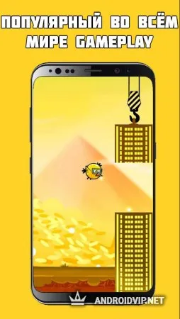 Но в этот раз вам нужно будет пролетать рядом с высоченными небоскребами, и постараться не задеть их. Каждый раз, как вы удачно пролетите сквозь препятствие, вы получите в награду золотые монету, которых со временем будет накапливаться всё больше и больше. Управление здесь довольно простое, нужно всего лишь нажимать на экран, чтобы птичка резко взлетала наверх, после чего она плавно начнёт падать обратно.