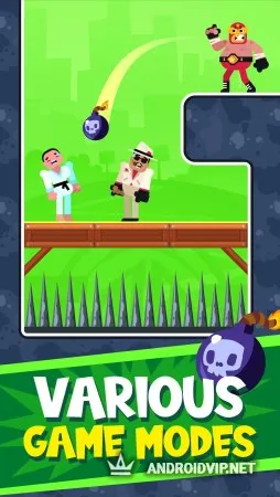 Ваш герой Панч Боб является профессиональным рестлером, которому не страшны даже самые опасные враги. Он не нуждается в крупнокалиберных пушках, холодном оружии и любом другом дополнительном снаряжении, ведь у него есть мощные кулаки, способные уложить врага за считанные секунды. На каждом уровне вас ждут различные головоломки, где враги расставлены по игровому полю и главная задача Боба - рассчитать траекторию своего прыжка так, чтобы уничтожить всех соперников.
