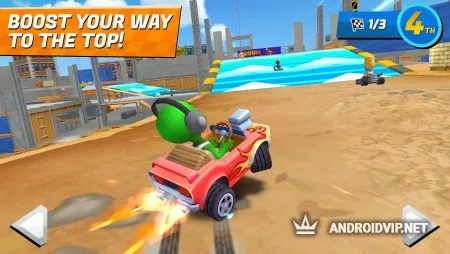 Перед началом игры вы сможете выбрать для себя транспортное средство и одного из семи уникальных героев, после чего сразу же отправитесь на ваши первые заезды против реальных игроков или искусственного интеллекта. Сами гонки проходят на девяти треках, оформленных в самых разнообразных стилях, где есть немалое количество резких поворотов, трамплинов, преград и разбросанных по дороге бустеров. Старайтесь подбирать их, чтобы увеличить вашу скорость и мощность карта прямо во время гонки.