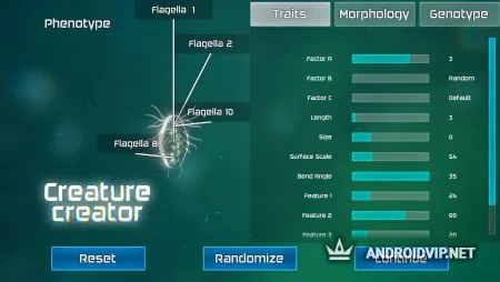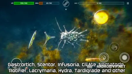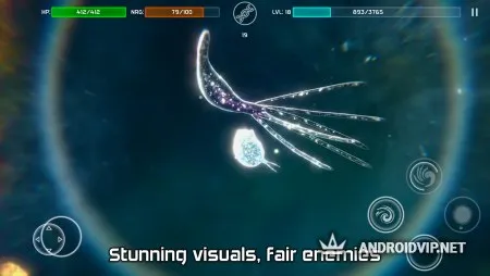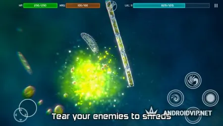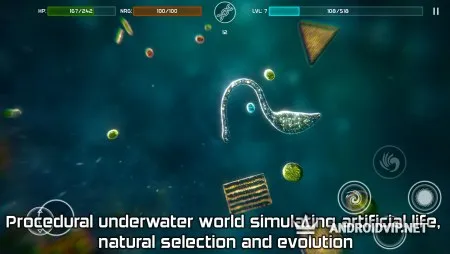 Для вас здесь подготовлен целый подводный мир, где обитают десятки уникальных существ, среди которых есть инфузории, бациллы, диатомовые водоросли, бактерии и другие виды. С самого начала игры начинайте развивать ваш живой организм, добавляя к нему различные части тела, придавая новые характеристики постоянно развивайтесь в нужную сторону. В итоге у вас может получится огромный кольчатый червь, или же совершенно неизведанное существо с большим количество щупалец.