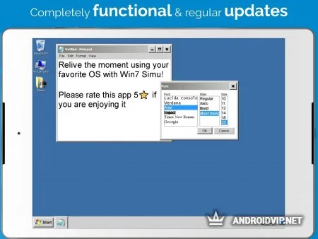 После установки симулятора, вы сразу же увидите знакомый рабочий стол, который у тому же полностью интерактивный. Вы сможете запускать все приложения, перемещать их и переименовывать. Также, здесь есть раздел "Мой компьютер", где хранятся все ваши файлы и документы. Ещё есть немало стандартных программ, такие как Internet Explorer, медиаплеер, блокнот, калькулятор и многое другое.