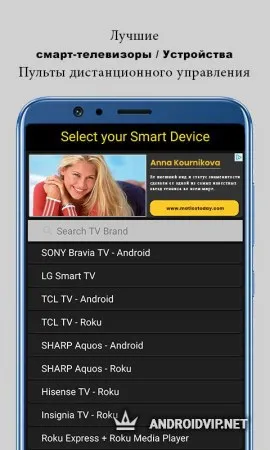 Универсальный пульт для телевизора - это простая в использовании программа, которая позволить управлять всеми телевизорами в вашем доме, использовав лишь вас смартфон. К тому же, если у вас есть Smart-TV, то вы сможете синхронизироваться ваше мобильное устройство, и запускать различные приложения прямо через телевизор!