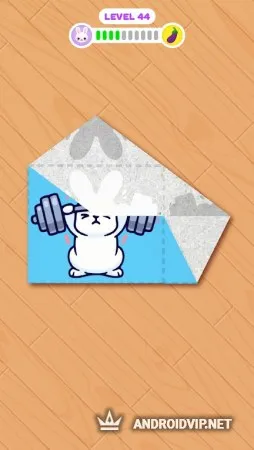 В каждом уровне вас будет ждать новая головоломка, представленная в виде листка бумаги, основные стороны сгиба которой отмечены пунктирной линией. За листком скрывается картинка и вам необходимо сложить все её части воедино поочередно сгибая каждую из сторон. Просто нажимайте на экран, чтобы согнуть нужную сторону и следите за тем, чтобы все части совпали. Некоторые головоломки довольно просты и не займут у вас много времени, а над другими придётся как следует задуматься.