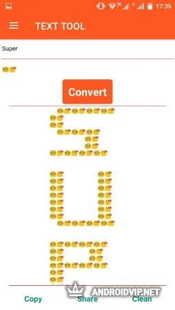 Ещё одной интересной функцией является конвертация текстовых символов в смайлики. Просто вставляйте нужное слово или фразу, выбирайте эмодзи и создавайте красивые надписи. После этого вы можете скопировать получившийся текст в буфер обмена или же сразу отправить его через приложение. Отправляйте интересные и незаурядные сообщения друзьям, разнообразьте описание в профиле инстаграма при помощи красивых шрифтов и попробуйте другие интересные возможности.
