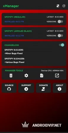 xManager для Spotify - это программа, позволяющая управлять различными версиями популярного стримингового сервиса музыки Spotify. Просматривайте все доступные версии музыкального приложения, включая те, которые ещё находятся на стадии разработки и устанавливайте то, что лучше всего подходит и адаптируется под ваш процессор.