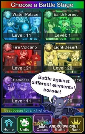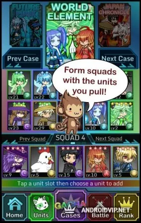 С самого начал вы сможете выбрать любого персонажа, из предоставленного списка. Все они разделены по отдельным категориям, в зависимости от их характеристик и стилистики. Определившись с героем, отправляйтесь выполнять интересные квесты, где в награду будете получать довольно ценные предметы и очки. Таким образом можно будет развивать каждого персонажа по отдельности, и сражаться с противниками гораздо эффективнее.