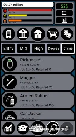 Начните своё путешествие в виртуальный мир и сумейте добиться настоящего успеха. Для начала вам нужно получить образование и выбрать свой дальнейший карьерный путь развития. Следите за жизненными показателями в верхней части экрана и старайтесь вовремя их восстанавливать. Как только вы начнёте зарабатывать, полученные деньги можно начать инвестировать или приобретать разные товары для дома.