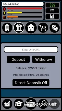 Life Simulator: Best Life - это занимательный симулятор жизни с элементами кликера, в котором вам предстоит погрузиться в виртуальный мир жизни вашей мечты. Обустройте свой дом, устройтесь на работу и продвигайтесь по карьерной лестнице, развлекайтесь играя в азартные игры и зарабатывайте на фондовой бирже. Создайте вокруг себя именно тот мир, который вы всегда хотели!