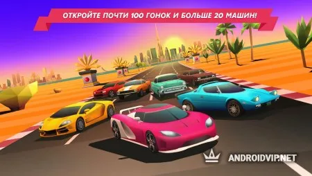 Здесь в вашем распоряжении будут более 20 популярных автомобилей, среди которых найдёте мощные гоночные болиды, старые классические автомобили и даже микроавтобусы. Сами заезды проходят вполне стандартно, где вам предстоит проехать большое расстояние по извилистой трассе, и обгонять десятки других соперником на пути. Для этого нужно будет быстро реагировать на внезапные препятствия и плавно заезжать в повороты.