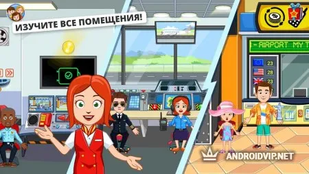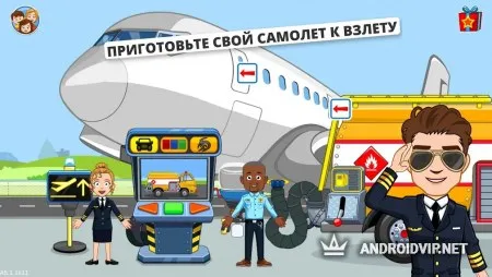 My Town : аэропорт - это красочная обучающая игра для детей от My Town Games, создателя большого количества развивающих интерактивных проектов для самых маленьких. На этот раз вас ждёт увлекательное путешествие, которое поможет узнать много нового о работе аэропорта, его сотрудниках и службах. Познакомьтесь с новыми героями, исследуйте несколько разнообразных локаций и подготовьте свой первый самолёт к взлёту!