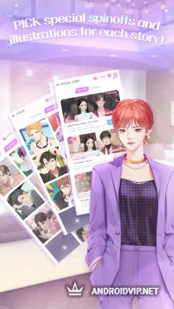 В игре собрано несколько по-настоящему уникальных интерактивных новелл, которые обязательно понравятся фанатам оригинальных шоу и сериалов. Станьте частью своей любимой истории и перепишите её так, как вам захочется. Для начала нужно выбрать одну из представленных новелл, чтобы перейти к прохождению. Настраивайте внешний вид героев и погружайтесь в живые диалоги и захватывающие сюжеты.