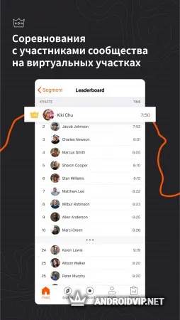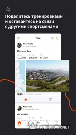 Помимо отслеживания своей активности, вы так же можете следить за прогрессом знакомых, друзей и профессиональных спортсменов. Объединяйтесь и вступайте в клубы к единомышленникам. Соревнуйтесь с другими пользователями и сравнивайте свои результаты в турнирных таблицах. Приложение совместимо с огромным количеством фитнес-браслетов, часов с GPS, датчиков движения и велокомпьютеров.