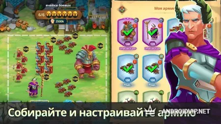 Сами бои проходят автоматически, от чего очень важно заранее продумывать состав вашей армии и использовать специальные навыки. В ряды ваших бойцов вы сможете нанять новых героев, где каждый из них обладает своими уникальными способностями. У тому же, каждого персонажа можно прокачивать по отдельности и изучать новые способности!